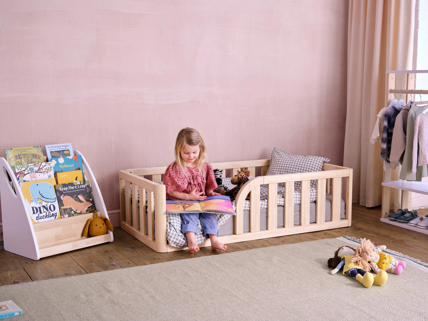 Roomix designs Montessori-inspired floor bed frames and matching kids’ furniture that look...