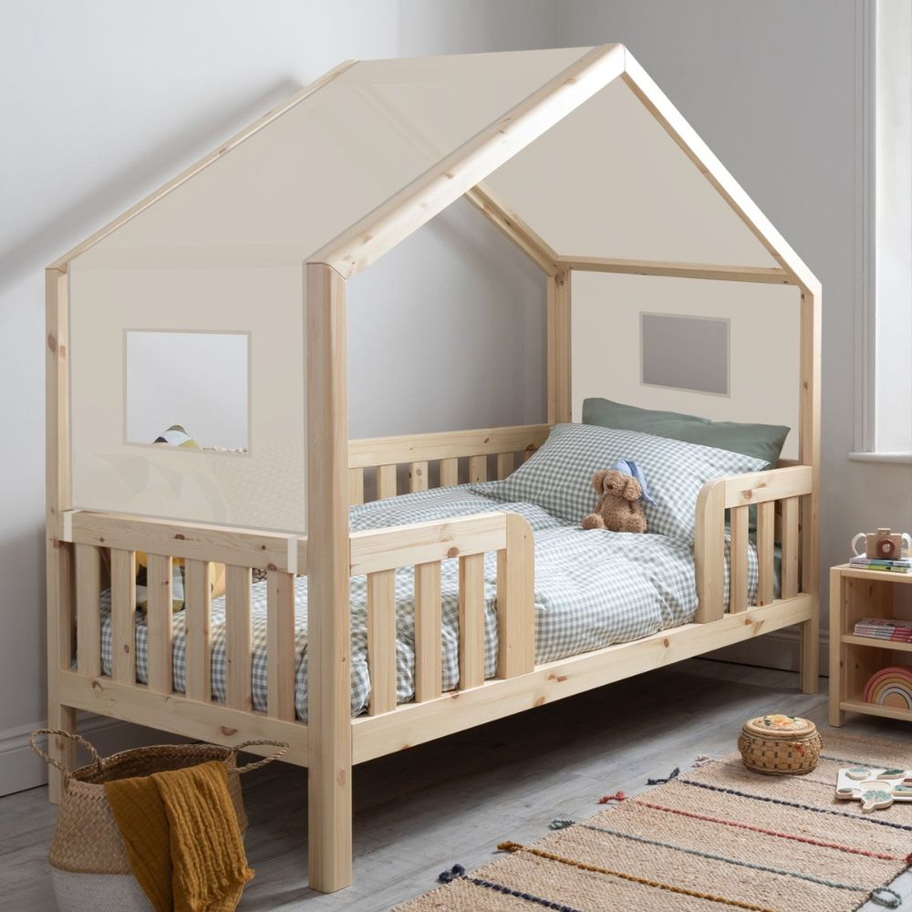 Funktioniert sowohl mit dem Übergangsbett für Kleinkinder als auch mit dem Kleinkind-Hausbett und verwandelt es in ein einfaches Tagesbett