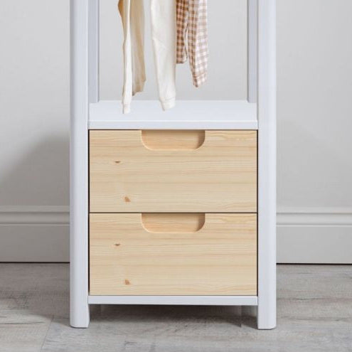 Unser kompaktes Nachttischregal lässt sich sauber in unsere Transition Kleinkindbetten und Hausbetten integrieren und bietet flexiblen Platz für alles, was man vor dem Schlafengehen braucht.