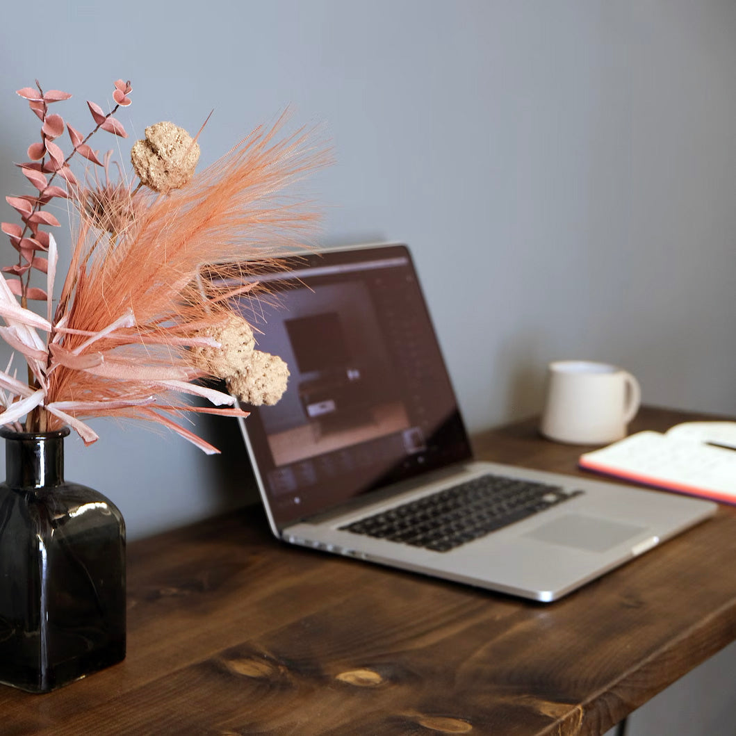 Maßgefertigter Stehschreibtisch; 105,5 cm hoch. Individuell zugeschnitten, mit Ihrer Wunschoberfläche und Beinform. Optional mit Monitorständer oder ausziehbarer Tastaturablage.