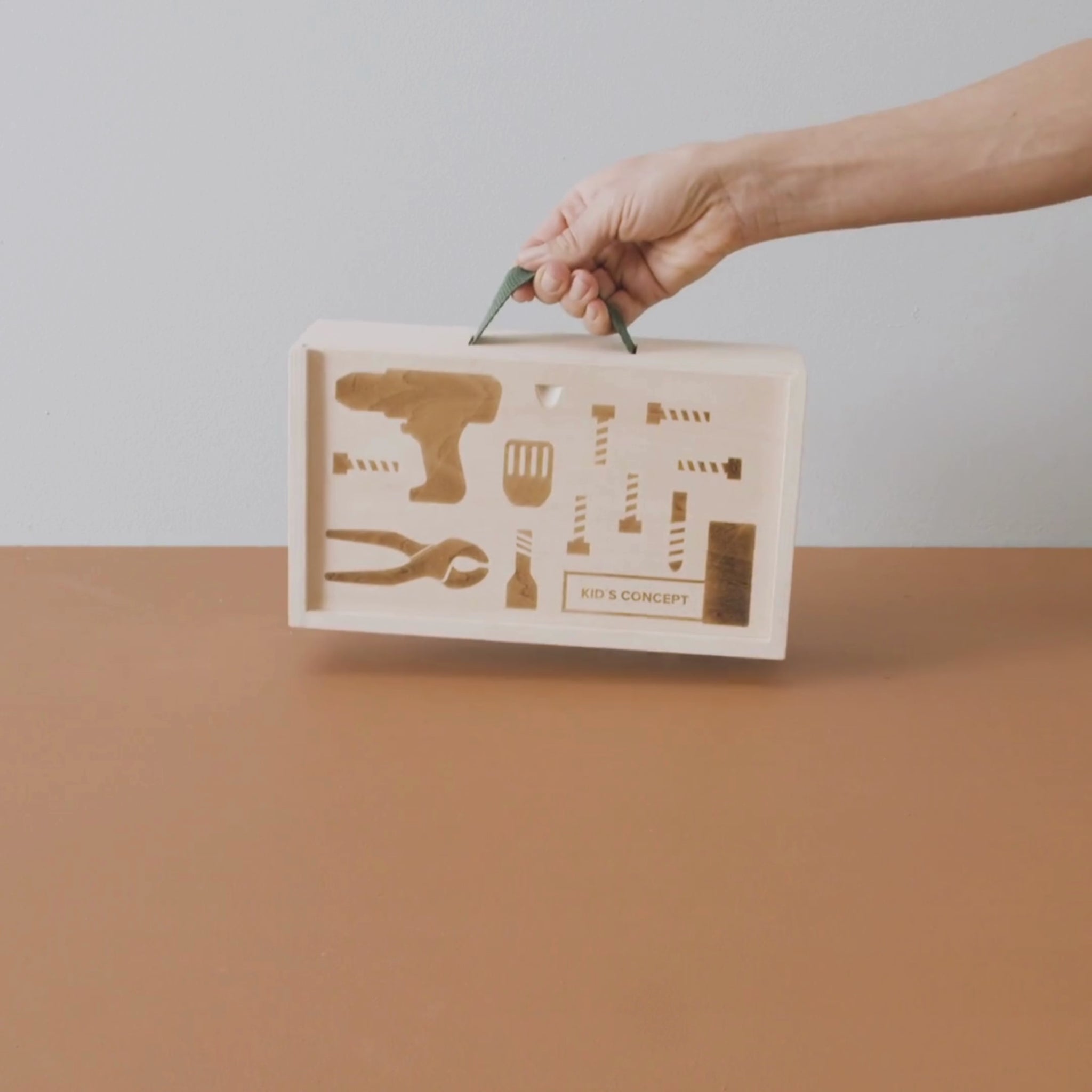 The perfect tool kit for some role play DIY. Encased in dovetail jointed FSC-certified wood and containing everything kids need to screw and fix. Featuring a drill which "click-click" sounds when you rotate the chuck, changing into an 'electric' screwdriver when you switch the bits. Toy screws come their own wooden box, with threads in the bottom where you can fasten the screws. A hand screwdriver and pliers with wooden set square completes the kit