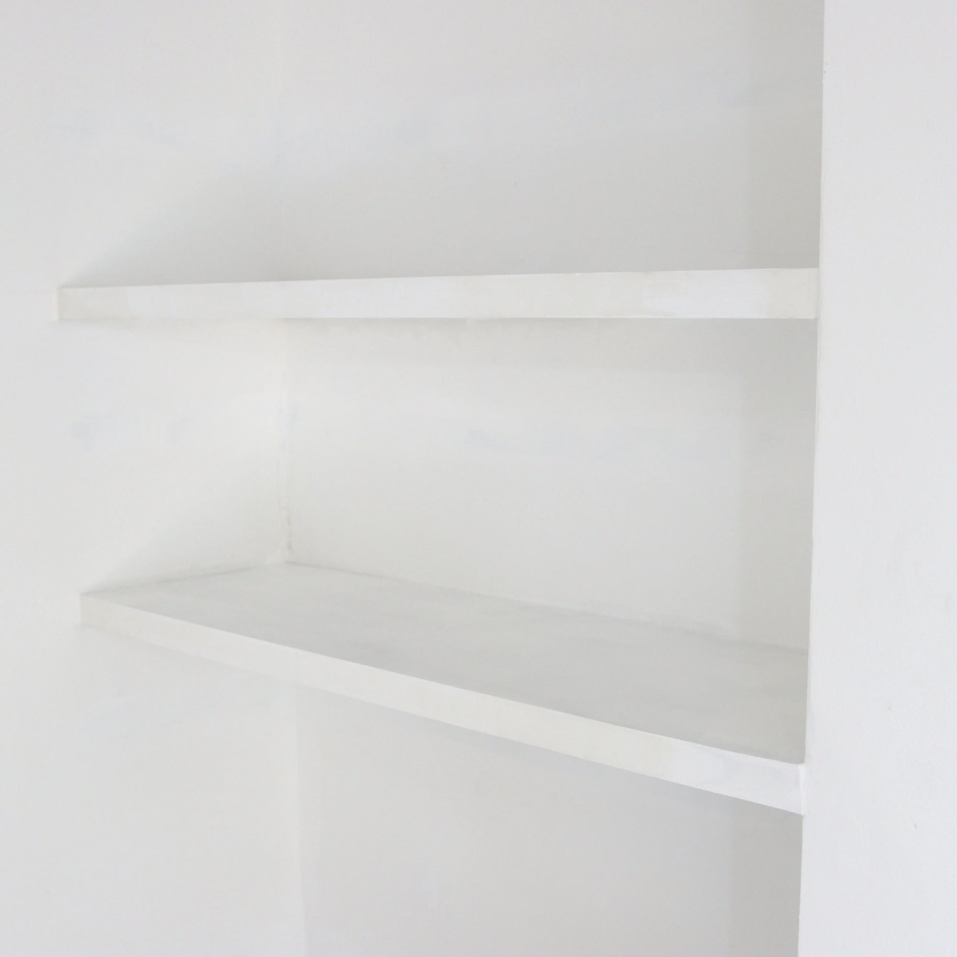 Étagères flottantes sur mesure, avec tout le nécessaire pour une installation facile : fixations, outils et instructions. Prêtes à peindre. En savoir plus