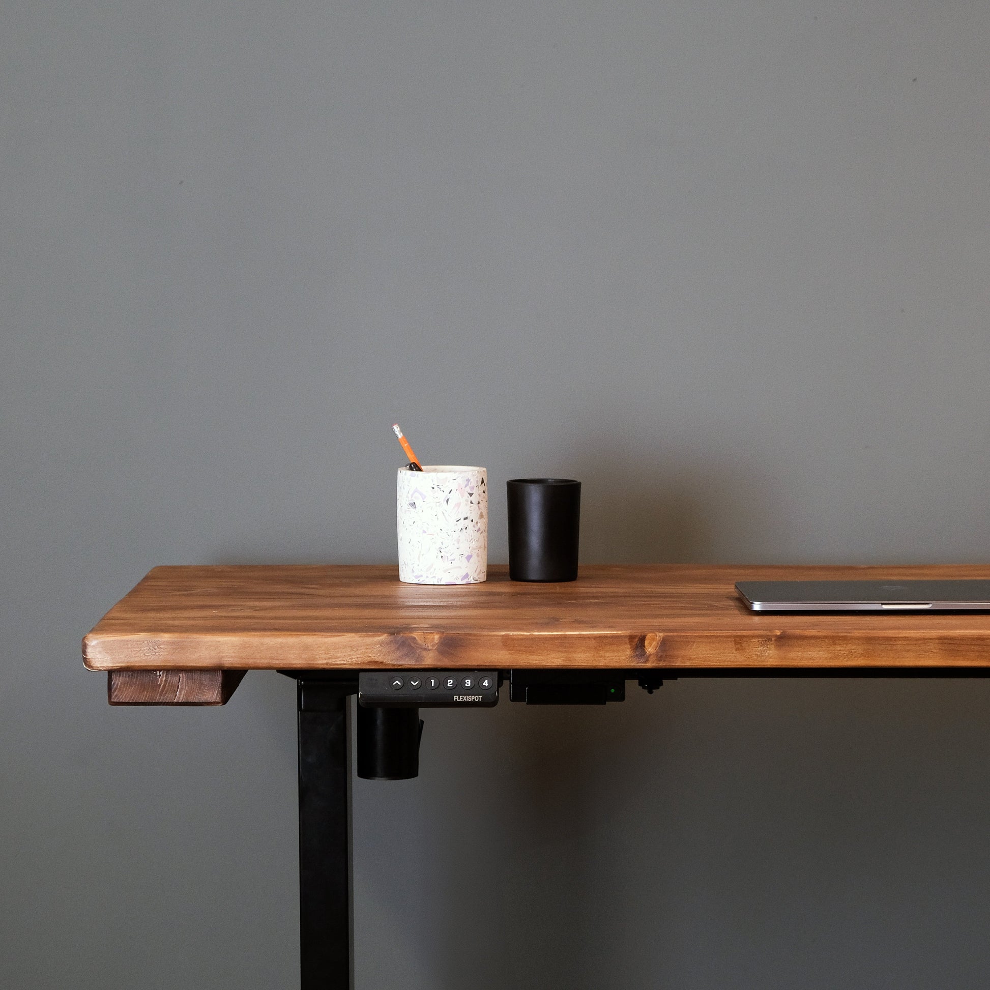 Our handmade height adjustable desks create the perfect workspace for your home office desk. Cut to size, with electric, height-adjustable legs. Move from sitting to standing desk position.