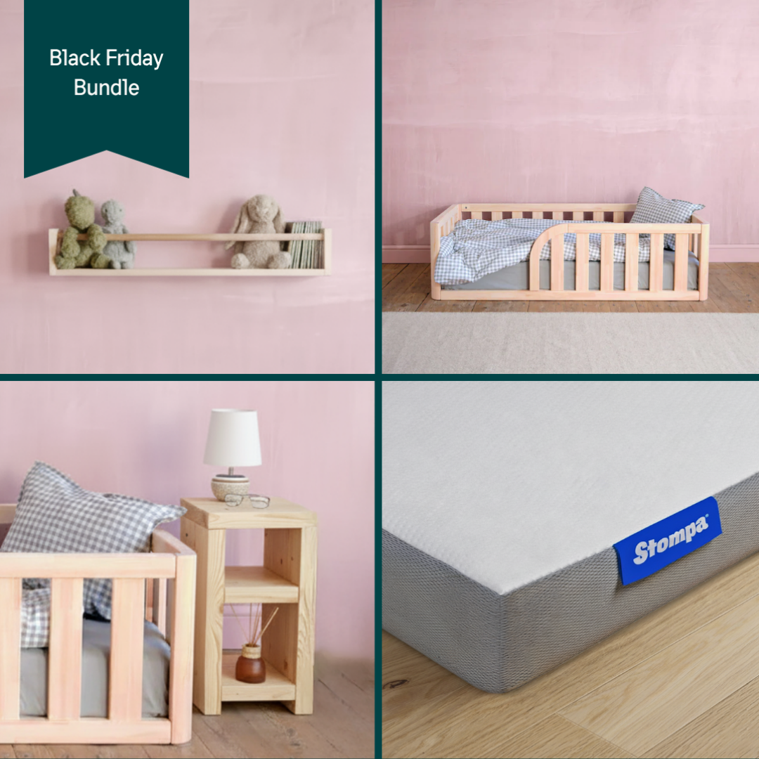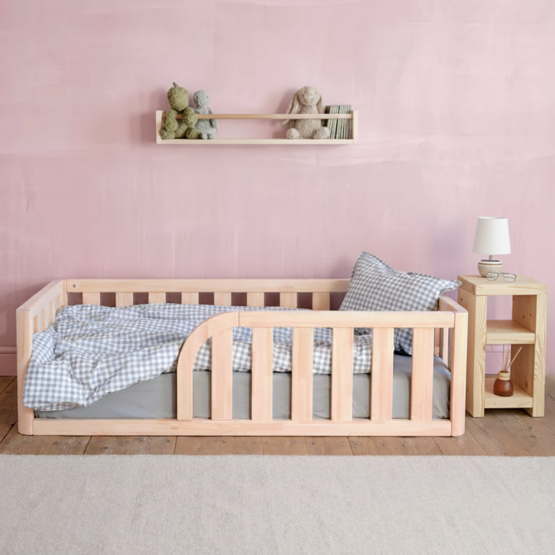 Make your little one’s bedtime feel just right with this beautiful all-in-one set. The bundle includes a single toddler floor bed plus mattress, a kids’ bookshelf, and a matching bedside table. Everything you need for a cozy, safe, and stylish space they’ll love to call their own.