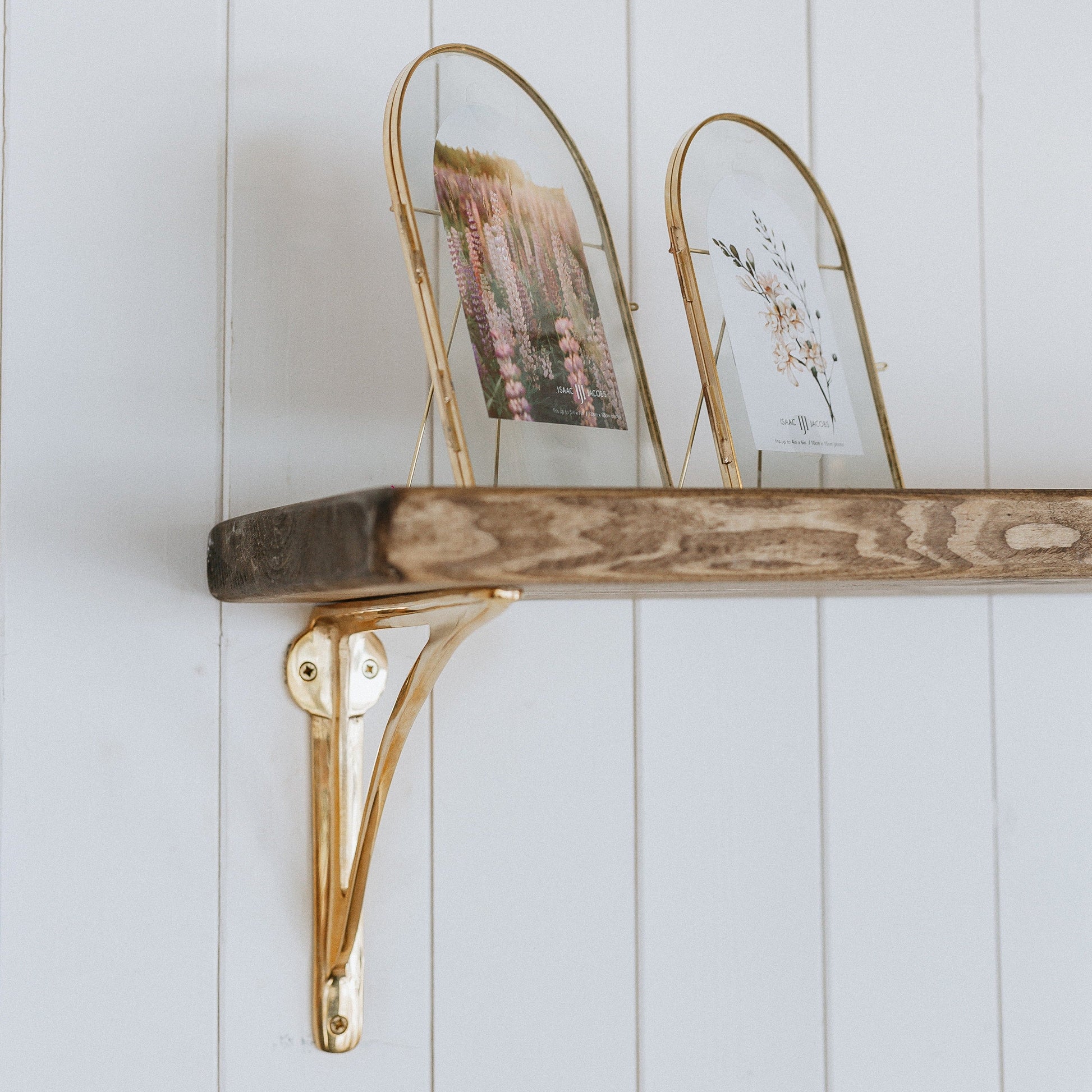 Cut-to-size reclaimed scaffold board shelving with metal brackets in a choice of styles. Easy installation guaranteed; we include the right fixings, tools and instructions. Custom made to fit your space. Shelf thickness = 3.2cm.
